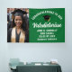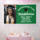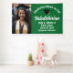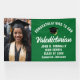 This modern green custom senior photograph graduation party banner for a valedictorian features classy typography of your high school or college name for the class of 2025. Customize with your graduating year under the chic handwritten script and black grad cap for great personalized graduate photo decor.