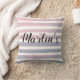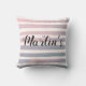 Custom Grey and Pink Striped Pattern Throw Pillow