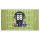 Football players, grid iron fans or American football coaches will love this football sports design featuring a Black and grey grid iron football jersey which can be customized with any number and name to create a unique gift or football team award. Also featured beside the football jersey is a water bottle, an American football and a grid iron helmet and the background is a marked football field with the yard lines.