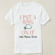 Groom Engagement T-shirts and Gifts. I put a ring on it engaged groom favours, t-shirts and keepsakes for the groom who just proposed marriage. Customize these engagement gifts with date or place he popped the question.