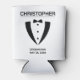 An old-fashioned can cooler with a classic shape. The cooler is enabled to personalize with name or initials of the groomsmen, along with a wedding or bachelor party date. A personalized gift for celebrating and toasting on the Special day!