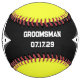 Celebrate your wedding party with a unique touch! This personalized Softball features a sleek tuxedo design, complete with a black bow tie and bold suit graphics. Customize it with your groomsman's name, title (like Best Man or Usher), and wedding date – or write any message you wish. A memorable keepsake for groomsmen, ring bearers, or sports-loving bridal parties. Perfect for wedding day gifts, proposals, or bachelor party favours.