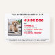 Guide Dog - Easily identify your dog as a working service dog, while keeping your dog focused and cut down on distractions while working with one of these k9 service dog id badges. Although not required, a Service Dog ID badge gives you and your service dog peace of mind and ease of travel without hassles and questions when seeking public access. Our Service Dog Id Badges are TSA compliant and have the United States Federal Laws on the back with ADA website and contact phone number. Customize with your Service Dog’s photo, name, handler’s name and city and state.