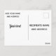 On the reverse of the postcard. You can enter in your details, your message, and the recipients details. All the text can be altered to met your needs.
