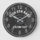 Custom gym clock featuring a weightlifting barbell weight. Personalize the text to make a great gift for your gym, athletic program, personal training business or more. Or, make a fun custom gift for someone. This is a great gift for athletes, trainers, coaches, sports programs and more. However, it can also be just as good for physical therapy patients and people overcoming injuries, etc.