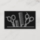 Scissors and Comb Black & White Minimalist Design. Make a bold first impression with this custom hair stylist business card featuring a sleek black background with iconic white scissors, comb, and styling tools. The minimalist front design is perfect for showcasing your profession, while the back provides space for your salon name, contact information, and website. Ideal for hairdressers, barbers, or beauty professionals who want a modern, professional, and stylish card to represent their brand. Perfect for networking events, client referrals, or appointment reminders.
