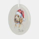 Add a special touch to your Christmas tree with this custom pet portrait ornament! This design features a hand drawn watercolor golden doodle with a cute Santa hat. Personalize with your pet's name, or give as a gift to a pet lover!