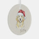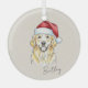 Add a special touch to your Christmas tree with this custom pet portrait ornament! This design features a hand drawn watercolor golden retriever with a cute Santa hat. Personalize with your pet's name, or give as a gift to a pet lover!