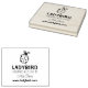 This "Handmade with love" rubber stamp features a cute ladybird with custom names and site.
