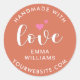 Personalized Handmade With Love With Pink Heart Classic Round Sticker.