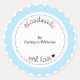 This cute personalized round party favour sticker features a light blue ruffled edge and a ribbon stitched border, a black heart and the words "Handmade with love". Perfect for your handmade goodies, crafts, gifts, candy bags, jars, cans, gift boxes, party favours and more! Stand out with these unique custom sticker seals. Click the "Customize it!" button to change the text size, text colour, font style and more! Please note: the round ribbon stitch border has a ribbon stitch appearance.