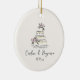 This ornament features a cream background with a blush floral cake sketch in a minimalist, elegant layout. The cream and blush palette pairs with handwritten script names and date for a soft, romantic keepsake. Personalize using the editable text template with the couple’s name and wedding date. A simple, timeless detail for celebrating a newlywed year or gifting the bride and groom.