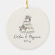 Custom Handwritten Blush Cream Doodle Wedding Cake Ceramic Ornament