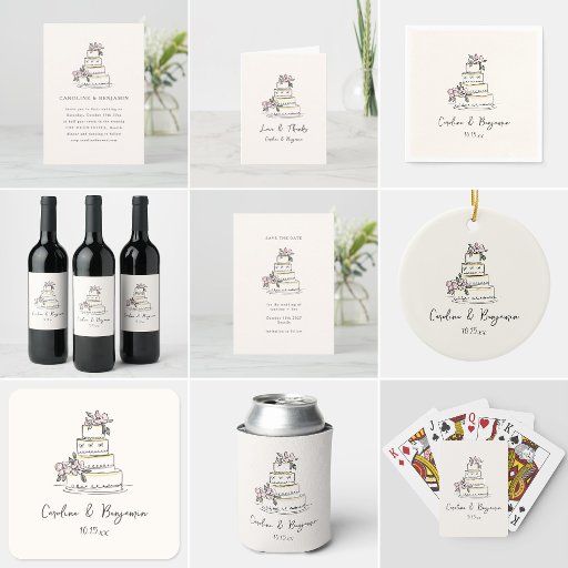 Sketched Blush and Cream Floral Cake Wedding SuiteDesigned by Opal Ellery