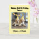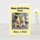 Celebrate the twins’ 2nd Birthday! Congratulate the adorable 2-year-old twins with this special and fully personalized birthday card. This 2nd birthday congratulations card features two cute puppies and a sweet twins poem inside (which you can easily remove if you prefer) and can be customized with the twins' names.