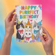 Celebrate in purrfect style with this adorable Happy Purrfect Birthday card! Featuring a group of cute cats in colourful party hats and bubbly letters, this fun and vibrant design is ideal for cat lovers of all ages. Whether it's for a friend, family member, or feline fanatic, this #CatBirthdayCard brings joy, colour, and a playful vibe to any celebration.