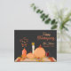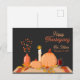 Celebrate the warmth of the season with this beautifully designed Happy Thanksgiving postcard. Featuring a festive fall scene with pumpkins, glowing candles, and scattered autumn leaves, this postcard sets the perfect tone for gratitude and gathering. Customize it with your name, family greeting, or special message to share heartfelt wishes with friends and loved ones. Ideal for seasonal greetings, holiday announcements, or thoughtful thank-you notes.