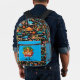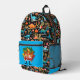 Kids Customized Monogramed Dinosaur Backpack With Colourful Patterns Of Dinosaurs On Black Background