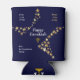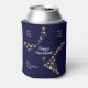 Custom Hebrew Stars HANUKKAH Can Cooler. Stylish blue and gold personalized Happy Hanukkah can cooler - an ideal stocking stuffer or favour giveaway for your family, friends or clients during Hanukkah. The heading says HAPPY HANUKKAH in white typography with PEACE, LOVE & JOY in gold coloured typography in the corners. PEACE, LOVE, JOY is written in HEBREW. This is set against a background of gold-coloured stars against midnight blue. The main heading and placeholder name are CUSTOMIZABLE, so you can add your name/greeting or create your own text. The design is repeated on the back, and on the base there is a CUSTOMIZABLE MONOGRAM plus gold coloured menorah. Matching cards and gifts are available. Choose from a wide selection of Hanukkah cards, clothing, home decor and gifts designed by Berean Designs.