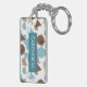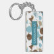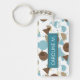 Durable rectangular key chain with classy, fun and contemporary pastel grey turquoise teal blue, beige, taupe and brown coloured abstract geometric triangles, polka dots and half circles mosaic pattern design on a white background. With room to customize or personalize with name of your choice. Stylish, modern and cool customizable style for the fashionable woman. To attach to your purse or backpack zipper, to hold loyalty rewards or membership cards, or of course... to hold keys! What ever keys you want to stay in place and hold together, a unique personalized key ring will make it look nicer and also easier to recognize as your own set. Click on our store name to check out more unique key holders with other custom designs.