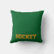 Custom Hockey Pillow with Your TEXT and Hockey PHOTO, on the back. Change Green and a Gold a Hockey Gifts Background and Text COLORS, Name and Number, are customizable. See how to Change the COLORS below to you