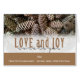 Rustic pine cones set off this classic, elegant design along with custom typography wishing Love and Joy Come to You. Ready for you to personalize with your custom text.