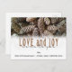 Rustic pine cones set off this classic, elegant design along with custom typography wishing Love and Joy Come to You. Ready for you to personalize with your custom name or monogram text.