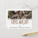 Rustic pine cones set off this classic, elegant design along with custom typography wishing Love and Joy Come to You. Ready for you to personalize with your custom name or monogram text.