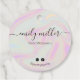 Custom Round Holographic Calligraphy Script Hang Tag. Personalize this design template to create unique retail tags for your products and business. Features elegant signature script font, modern design and faux holographic image background.