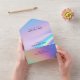 Minimalist Holographic Simple Elegant All in One Wedding Invitation featuring a clean and stylish design beautiful for birthday, corporate party, sweet 16, bridal party, baby shower and any celebration. Unisex, colourful and eyecatching but professional and formal.