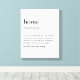 Create your very own custom home definition, featuring your family name below. Black and white minimalist dictionary style heartwarming definition of home. Black modern typography print on white background. Personalize the definition if you like or just add your family name, you can also choose a different background colour if you enter in the design tool. This personalized home definition canvas print makes a unique gift for newly weds, new home owners or adds a personal and modern touch to your own home. A minimalist home decor idea for living room, bedroom or entrance hall.