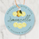 Elegant and modern limoncello favour tag with the text limoncello, homemade with love and your name in chic script and hand lettered typography on a blue glow background with a stylish touch of pretty watercolor lemon and lemon slices. Simply add your name or business. Exclusively designed for you by Happy Dolphin Studio. If you need any help or matching products please contact us at happydolphinstudio@outlook.com.