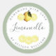 Elegant and modern limoncello sticker label with the text limoncello, homemade with love and your name in chic script calligraphy and modern typography on a laurel green background with a stylish touch of pretty watercolor lemon and lemon slices. Simply add your name or business. Exclusively designed for you by Happy Dolphin Studio. If you need any help or matching products please contact us at happydolphinstudio@outlook.com.