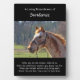 A beautiful memorial plaque that is meant to be customize with the horse's name and photo. A spiritual poem about remembrance. A beautiful gift for someone that has lost their horse.