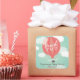Customize this lovely stylish Girl Baby Shower Thank You Stickers featuring an original illustration of a pink striped hot air balloon flying high in the blue sky with white clouds. Matching Baby Shower Invitation can be found here: