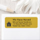 Label says we have moved and can be personalized with your name and new address. The is a pentagon shaped house next to the text.