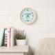 This pretty customizable wall clock is featuring a watercolor wreath of hummingbirds and botanical branches on a light blue background. The font size and font style can be changed by clicking on "Edit design". All hummingbird images are taken from original watercolors by C. Dobbins.