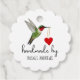 Cute tags with a Ruby-throated hummingbird carrying a heart ornament for home-made gifts and hand-made goods. Just add your name. On the back is a customizable template field for your website/company. It can be deleted for a handwritten message.
