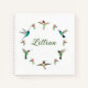 This cute customizable notebook is featuring a watercolor wreath of hummingbirds and 4 o'clock flowers on a white background. The font style and font size can be changed by clicking on "Edit by using design tool". All hummingbird images are taken from original watercolors by C. Dobbins.