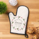 This pretty customizable oven mitt is featuring a hand-painted watercolor ruby-throated hummingbirds and botanical branches on a cream-colored background. The font size and font style can be changed by clicking on "Edit design". All hummingbird images are taken from original watercolors by C. Dobbins.