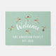 This unique custom doormat is featuring Anna's Hummingbirds on a light emerald green background.