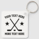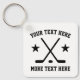 Custom ice hockey keychain for player and teams. Personalized square metal key chains with crossed hockey sticks, stars and puck logo. Double sided print. Cool Birthday or Christmas gift for kids and adults. Add your own colour.