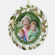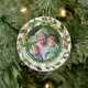 This beautiful memorial ornament remembers your mom with two photos, one on the front, and one on the back, and dates of her life inside a Christmas wreath with holly greenery and the quote "In loving memory of my dear mom." Can also be customized for a dad by changing the text. Top of the ornament features a small white heart.