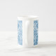 Custom Indigo Blue Floral Faux Lace Pattern Bone China Mug