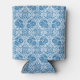 Custom Indigo Blue Floral Faux Lace Pattern Can Cooler