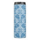 Custom Indigo Blue Floral Faux Lace Pattern Thermal Tumbler