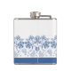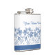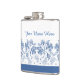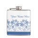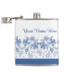 Custom Indigo Blue, White Floral Border Hip Flask