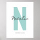 Custom Inital Baby Name and Birth Date Modern Boho Poster