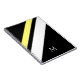 Introducing our Custom Initial Yellow and White Diagonal Lines on Black Background Design, a striking composition of vibrant yellow and crisp white diagonal lines set against a bold black backdrop, complete with the personalized touch of an initial, resulting in a modern and impactful design that exudes character.