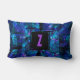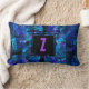 Custom Initial Letter Monogram Shimmering Blues Lumbar Pillow